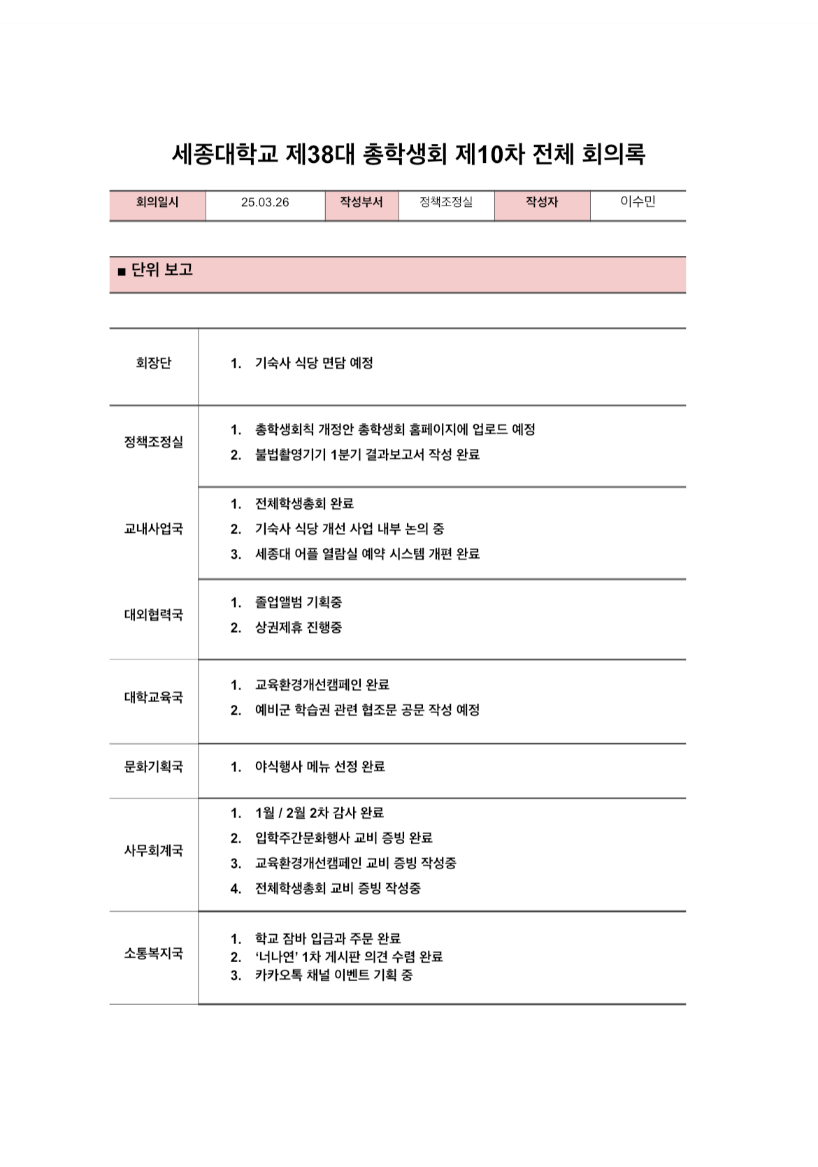 (25-03-26) 중앙집행위원회 10차 회의록